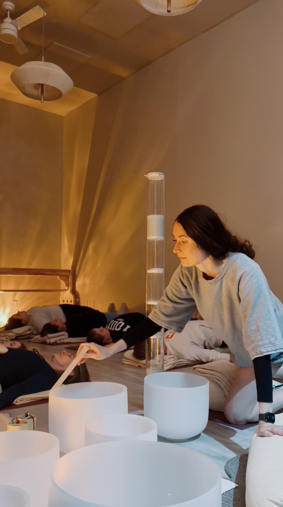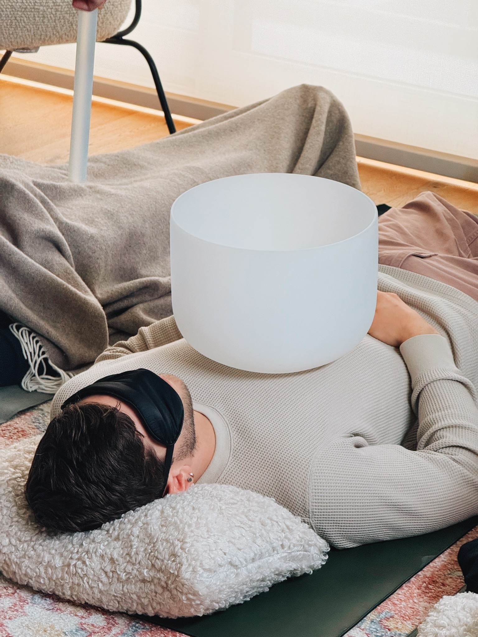 Sound travels through tissue and bone, inviting awareness back into the physical body. This can soften habitual tension patterns and help people feel more present, embodied, and attuned to subtle sensations — especially helpful for those who spend a lot of time in their head.